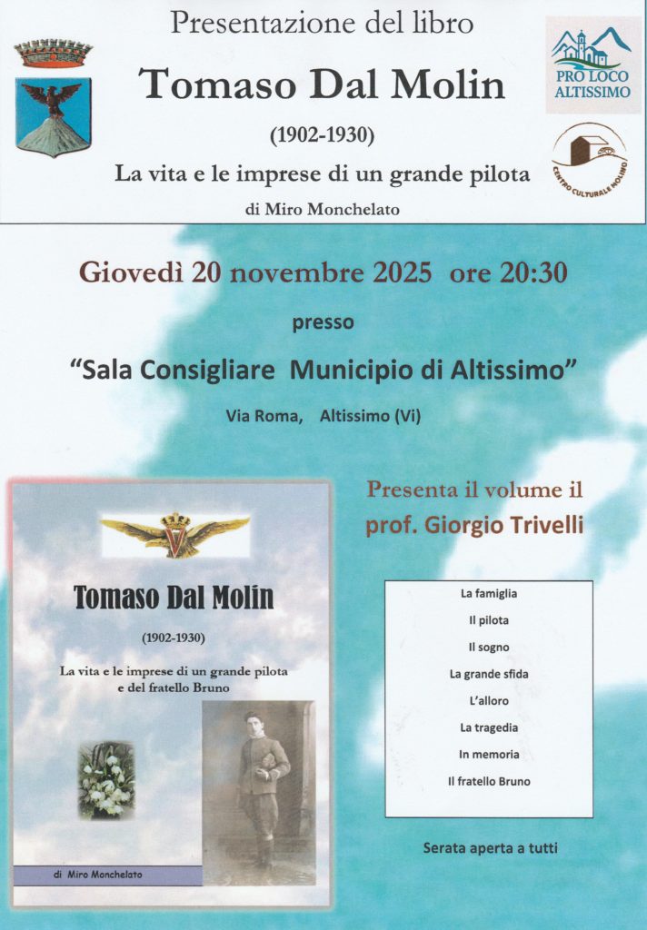 Nella circostanza, i presenti potranno ammirare quel dono che la popolazione di Altissimo consegnò a Tomaso l’8 dicembre 1929 in occasione della sua visita alla terra natia al termine dei festeggiamenti dell’importante risultato da Lui raggiunto alla Coppa Schneider